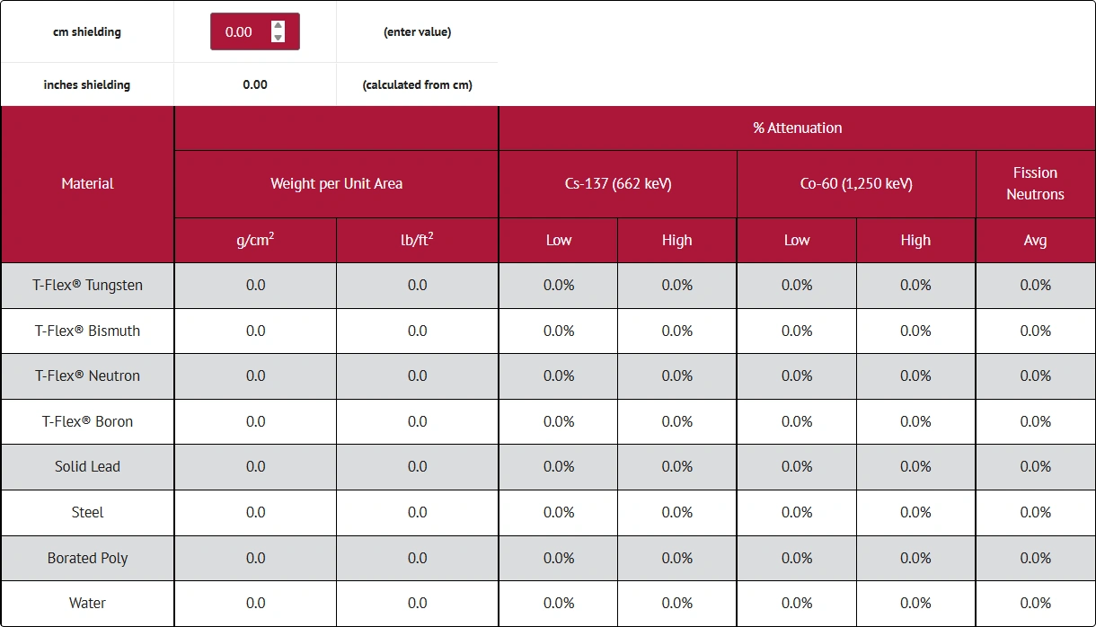 Our Scientists at NPO have used their knowledge and expertise to develop the attenuation calculator to provide highly accurate attenuation data for various shielding materials, including NPO’s T-Flex products.